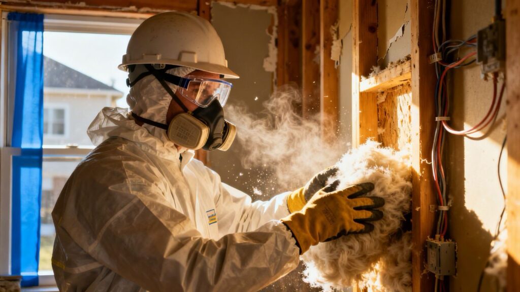 • Personal Protective Equipment (PPE): All workers involved in renovation or repair activities in areas with potential asbestos must wear appropriate PPE, including respirators, disposable coveralls, gloves, and eye protection.